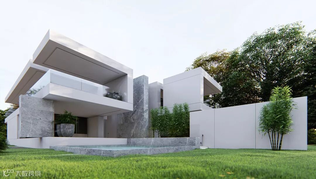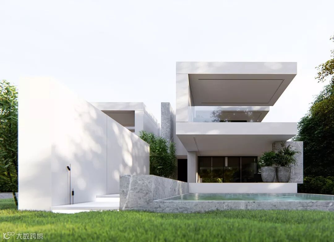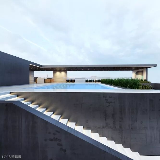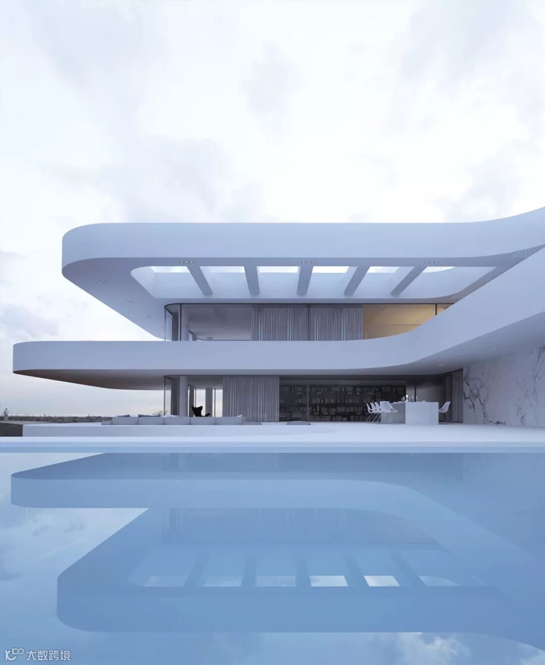 蓝色的水面、纯白的建筑、黄色的灯光,层次分明的肌理,组成一个完美的住宅▽