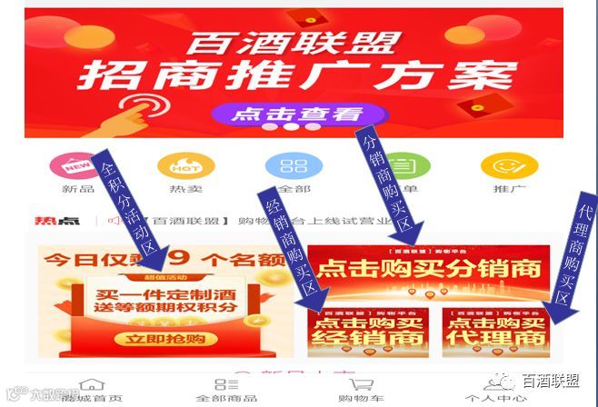 此次“百酒联盟”平台将向全国招1万名经销商和1千名代理商,加入的经销商、代理商均将享受到诸多重大利好政策,不仅能够获赠1千至8万的期权积分、按批发价消费或销售15%业绩奖励、成功推荐投资型的推荐人获赠600至5万期权积分、享受全国市场销售新增业绩10%的加权分红奖励、开设专卖店时公司按首批购货款30%至60%的铺货五大权益,代理商还能根据代理层级享受到区域市场或伞下团队市场新增业绩3%至10%的管理奖。