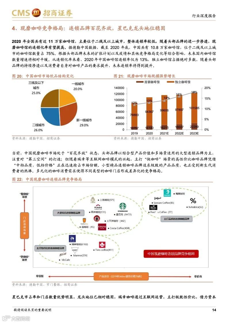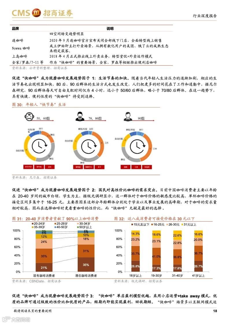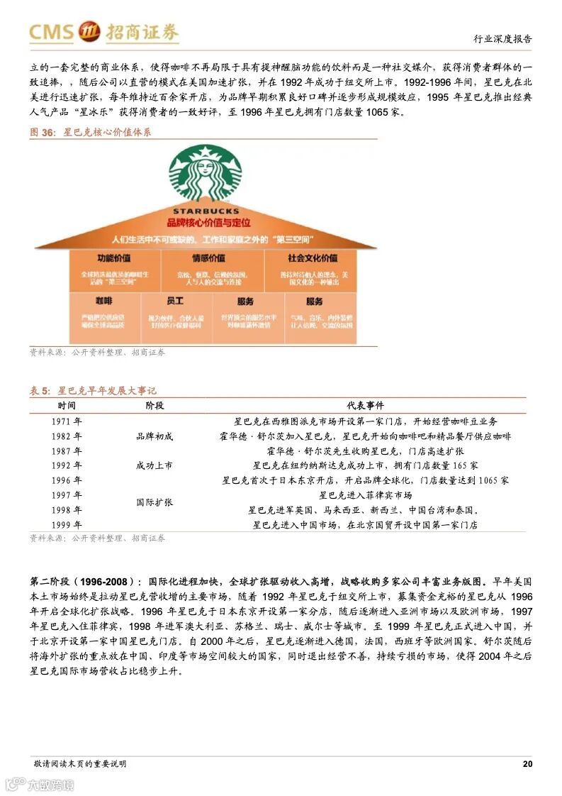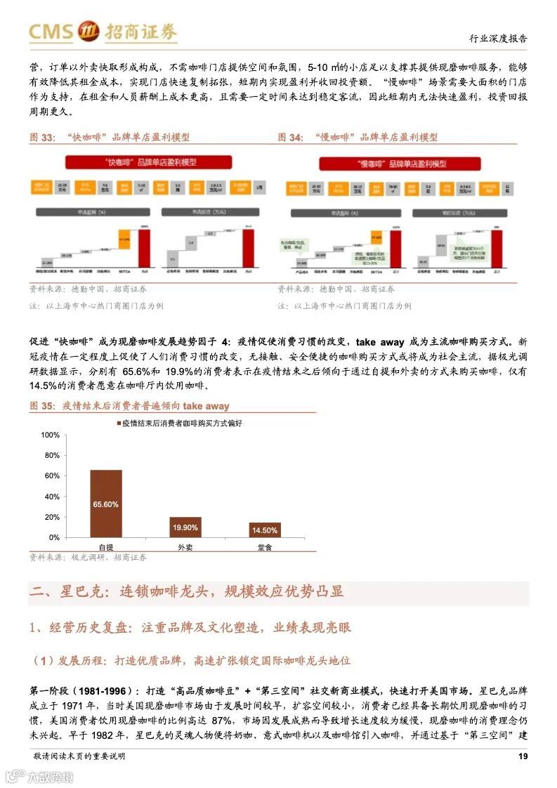 本篇报告分析了咖啡行业发展历史、在中国的发展阶段与趋势以及两家龙头星巴克和瑞幸的公司优势,认为咖啡行业是一个高需求粘性、高利润率且容易诞生龙头的行业,当下中国咖啡行业仍处于渗透率提升的快速阶段,并且从小众精英群体向大众工薪阶层普及,高性价比、标准化、便捷化、饮料化咖啡需求崛起,以瑞幸咖啡、manner 为代表的“take away”型“快咖啡”发展迅猛。