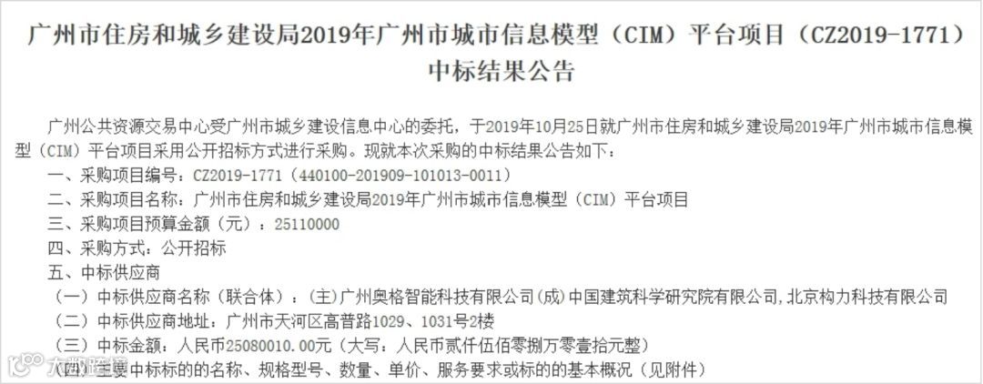 2019年6月28日,住建部将广州纳入城市信息模型(CIM)平台建设试点工作,建设具有规划审查、建筑设计方案审查、施工图审查、竣工验收备案等功能的CIM平台,精简和改革工程建设项目审批程序,减少审批时间,探索建设智慧城市基础平台。