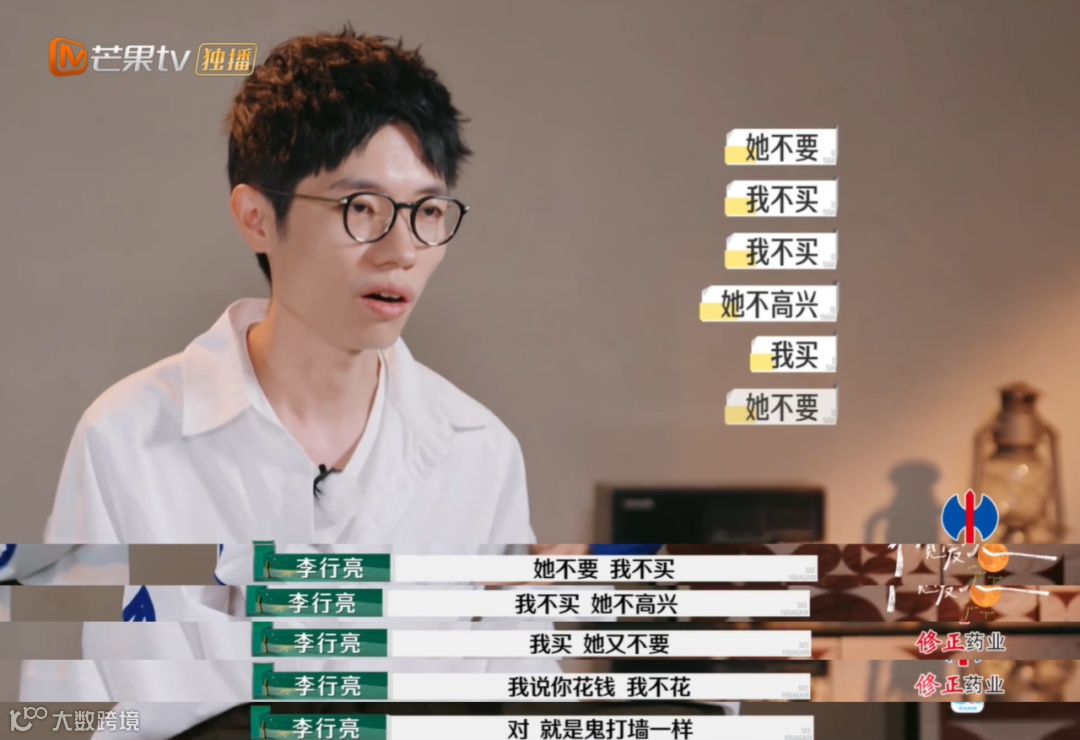 回到节目的开头,我们也会看到,在李行亮的眼中,他们并没有什么很大的矛盾,只是这种潜移默化的影响渐渐开始浮出水面,让他感受到了困惑,所以他来节目的目的就是寻求这个无解问题的答案。