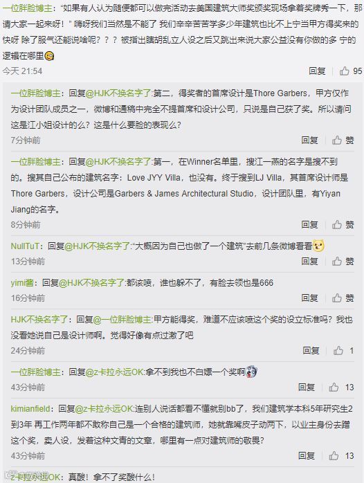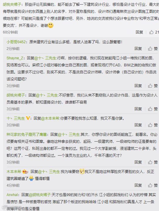 江一燕获建筑大奖收到来自网友称赞与祝福的同时,来自设计界的反对声也是不绝于耳,一个艺人轻轻松松拿到了所谓建筑大奖,多少建筑师埋头苦读五年,通过9门严苛的专业课考试,也没有获得过一星半点奖项,心里怎么能平衡?