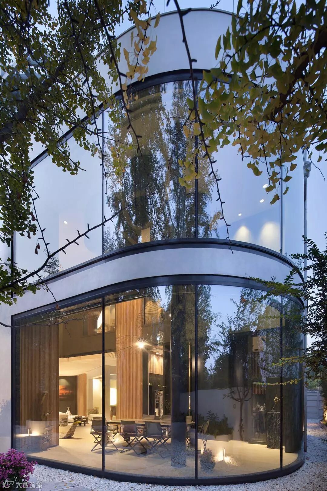 从专业的角度看,小编也是觉得可圈可点,简洁现代,值得点赞! 在中国能建造这样的小别墅,光是有钱还是不够的,得非常有钱!有钱买地,有钱请设计师,有钱选高级材料和装饰,这一面简洁的弧形玻璃窗相信就要花不少钱。