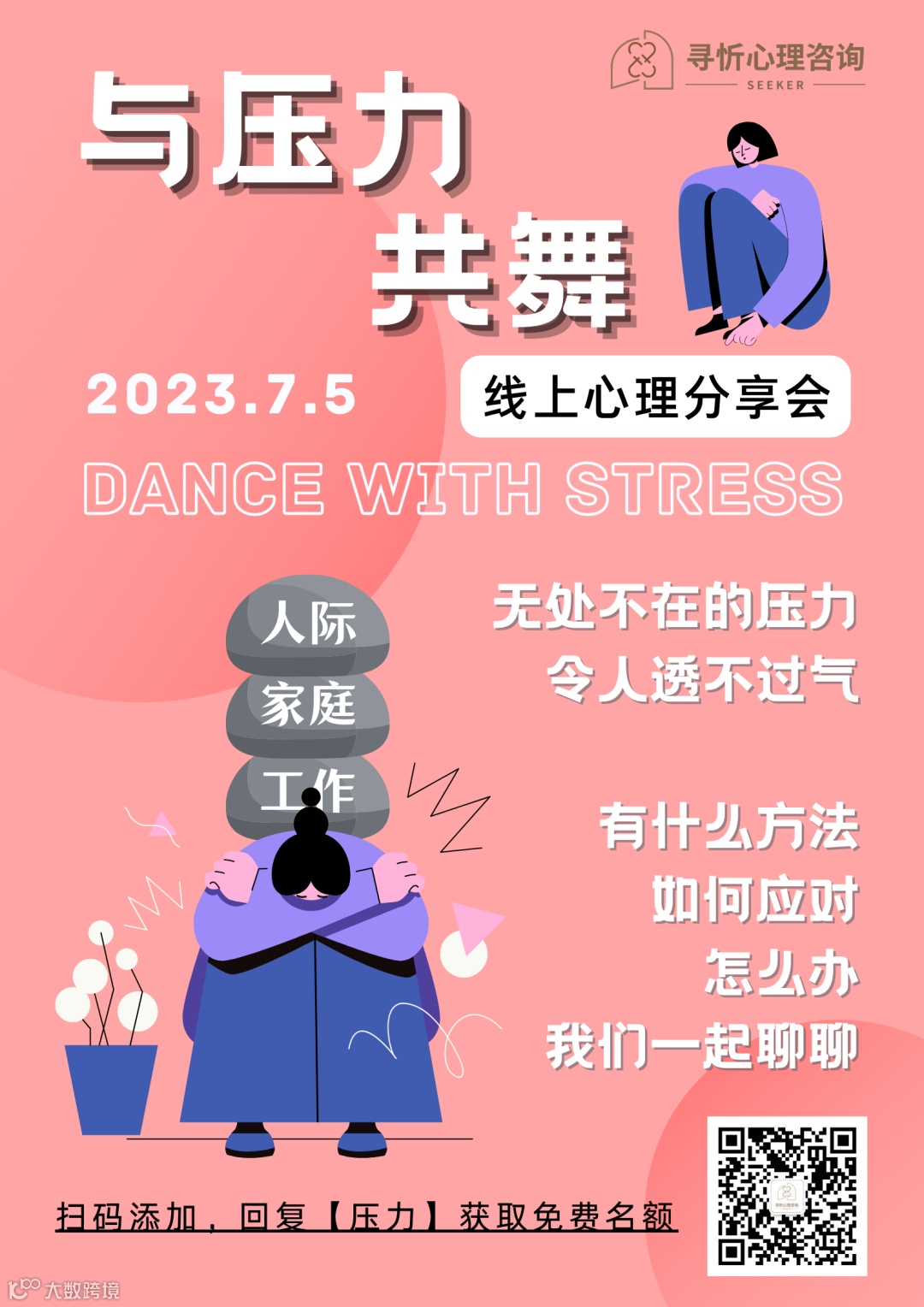 扫描下方二维码添加助理备注关键词 【压力】即可获得免费报名分享会的方式~