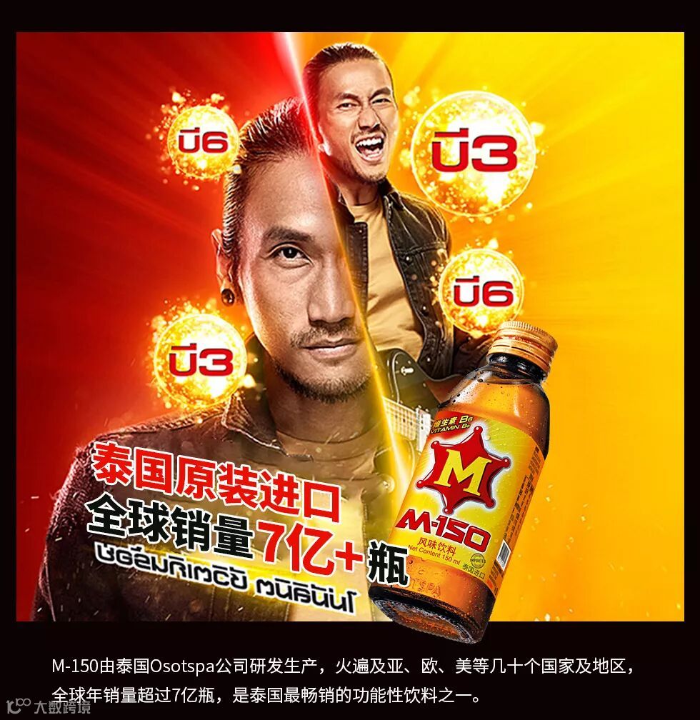导读:M-150是泰国最畅销的功能性饮料之一,全球年销量超过7亿瓶。M-150中含有瓜拉纳、牛磺酸,能有效缓解疲劳、快速补充能量,提高注意力,让你回复最佳状态。