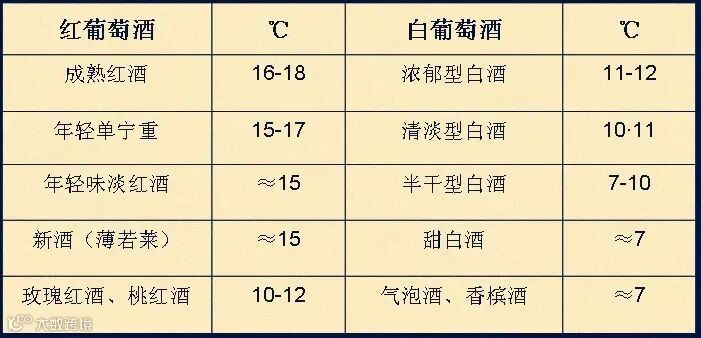 附上各种葡萄酒的最佳适饮温度图(可收藏图片,今后参考哇):