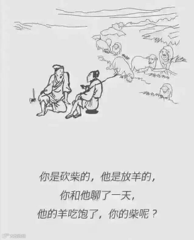 砍柴的和放羊的聊了一天,相见恨晚成了好朋友。砍柴的从放羊的那里得知了羊的销路,羊肉汤馆,烧烤羊肉...于是,砍柴的找到了羊汤馆老板,批量供柴;把柴深加工,制成碳,找到了烧烤店,批量供货;雇了工人,砍柴,制碳;边砍柴,边制碳,还帮放羊的朋友去推销羊!