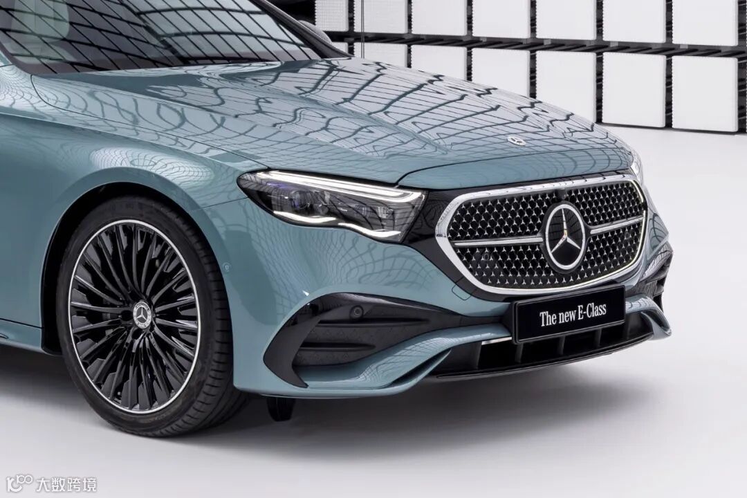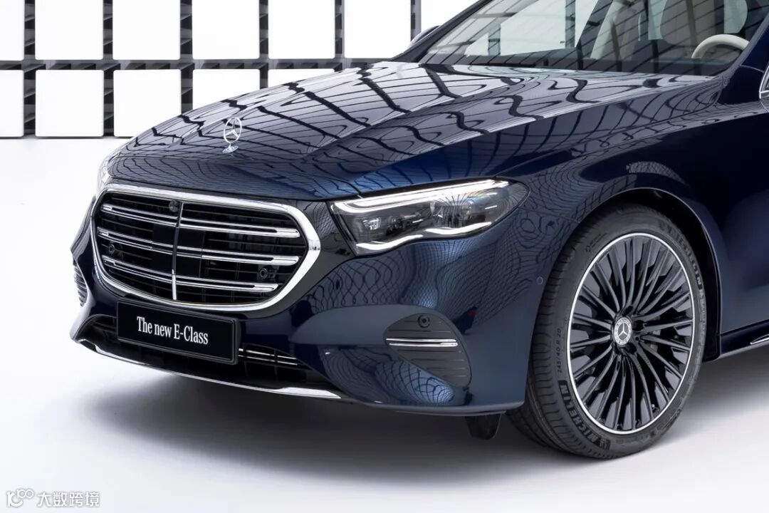 延续经典的轿车与运动轿车双前脸设计的同时,全新E级车配备3D立体设计的璀璨星环格栅,并与全新的日间行车灯遥相呼应。格栅与头灯之间新增黑色高亮饰板,与梅赛德斯-奔驰纯电车型的格栅设计元素相得益彰,体现出全新E级车拥抱电动化的理念。