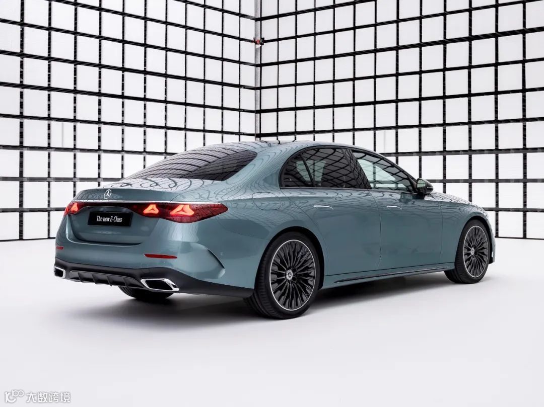 全新E级车延续短前悬、驾驶舱后移的经典设计,勾勒出和谐的车身比例。车身侧面两条筋线为优雅格调注入动感活力。源自S级轿车的隐藏式车门把手,以化繁为简的设计进一步优化空气动力学,带来低至0.23的整车风阻系数。全新两段式“星徽尾灯”完美融入四颗深邃的三叉星徽,令人过目难忘,极具辨识度。左右尾灯由一条饰板相连,延展了车尾的视觉宽度。