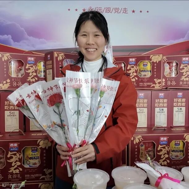 娇艳的康乃馨带着芬芳,精致的礼品裹着心意,一份份满载关怀的美好,由幸福委主任杨主任、工会主席吴主席、妇女主任言主任送到每一位女神手中。