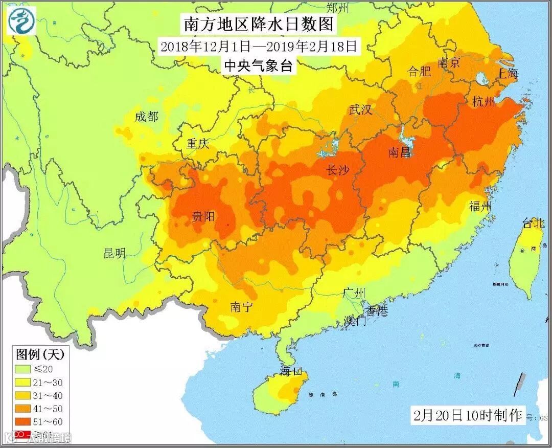 中央气象台预计,2月下旬,江淮、江南、华南及西南地区东部仍将多阴雨天气,大部地区降水日数有6~9天,累计降水量较常年同期偏多1~3倍;气温较常年同期偏低1~3℃。主要降水时段在20日至21日、22日至24日、26日至28日。其中20日至21日,湖南、江西、浙江、福建、广东、广西等地有中到大雨,局地有暴雨或大暴雨。