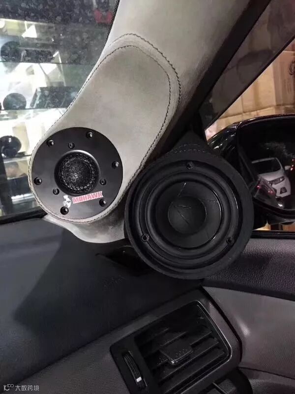 前声场的美国豪客MP-A73中音单元通过倒模安装在A柱上,得到理想的声场高度和深度,同时也有比较理想的视觉效果。