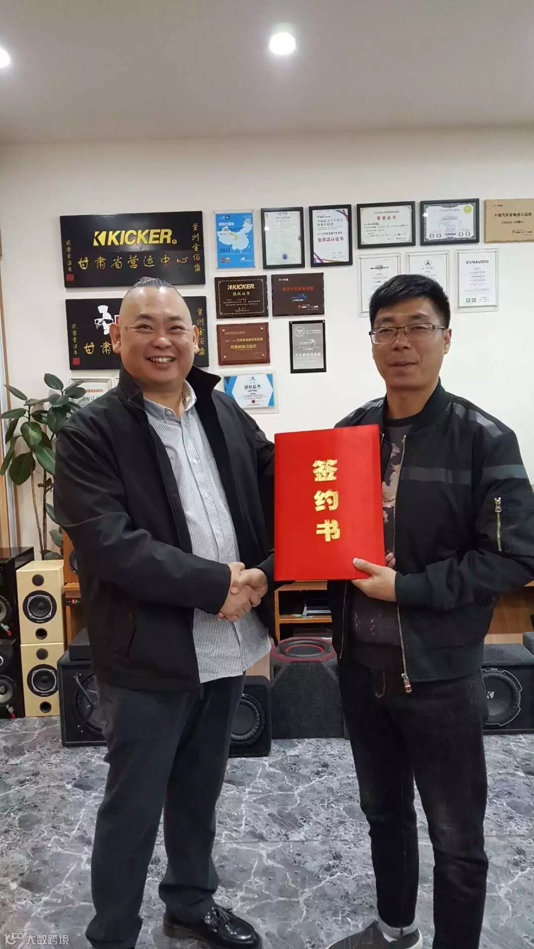 广州音皇DAVID去哪儿?来到延安非凡汽车音响,共同商谈2018年年度合作方案,签订合作协议,延安非凡汽车音响作为KICKER,MOHAWK汽车音响品牌白金家族店在2017年大力支持,推广KICKER,MOHAWK产品,表现优秀。2018年继续成为美国KICKER和美国MOHAWK汽车音响品牌白金家族店。