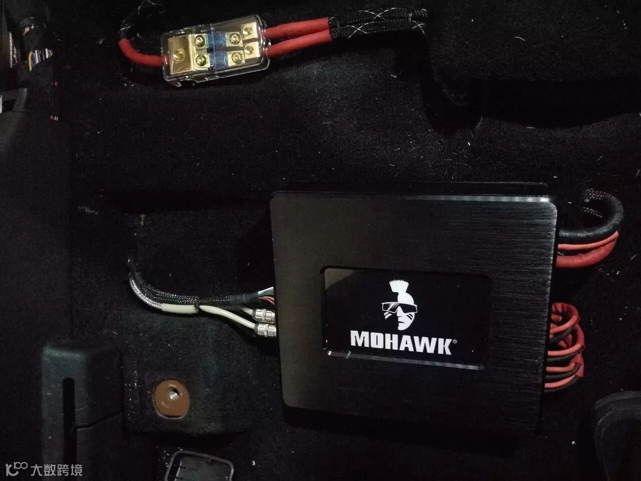 功放的安装,豪客MC600.4四路功放安装在座椅底下,不占空间,还能有效的保证每个喇叭功率充足