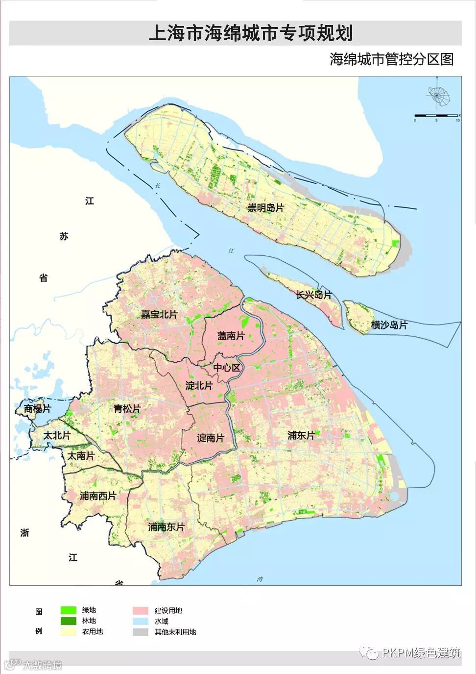 上海市属于平原感潮河网地区,城镇排水与水利区域除涝分片联系紧密。本规划以顺应城市水系特征、便于城市管理、科学合理划分为原则,在本市水利区域除涝分片的基础上,规划形成了15个海绵城市管控分区。
