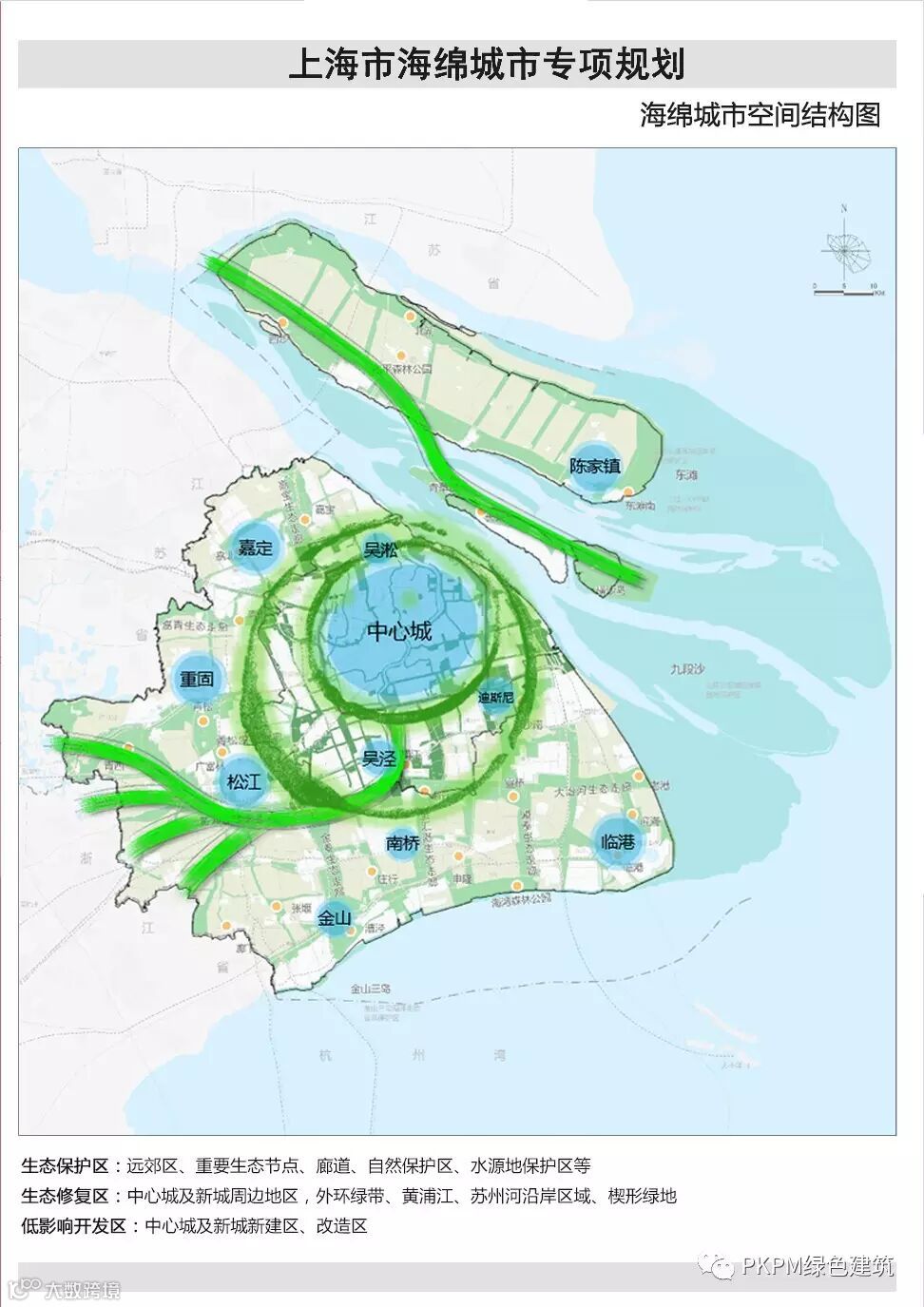生态修复区:中心城及新城周边地区,外环绿带、黄浦江、苏州河沿岸区域、楔形绿地。