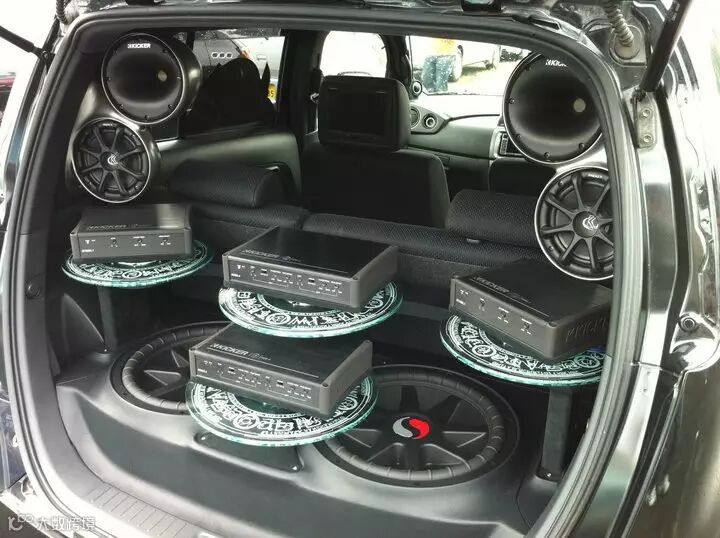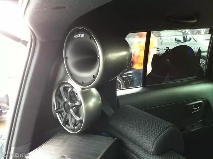 后备箱安装的是KICKER 游艇系列喇叭号角+同轴