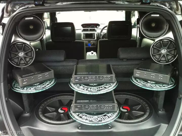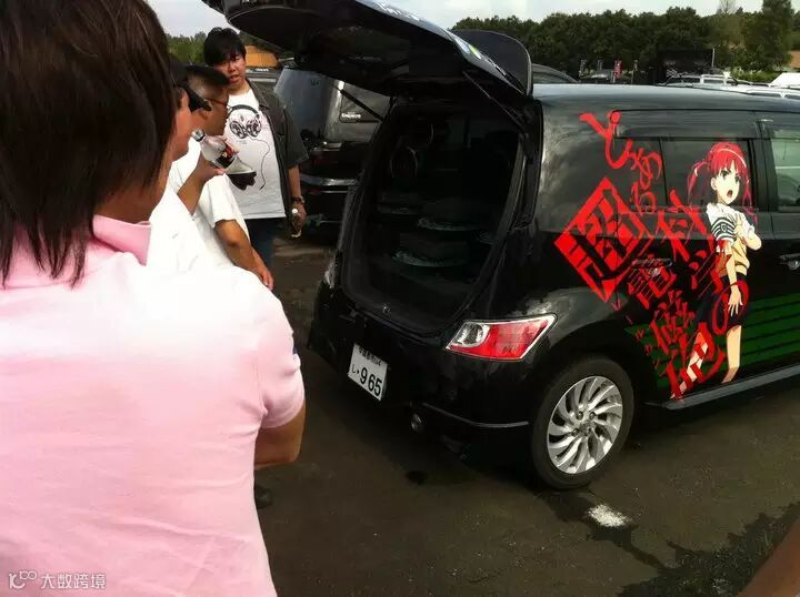 下面是日本改装展,展示的一台带着浓郁日本风格的二次元KICKER音响改装车