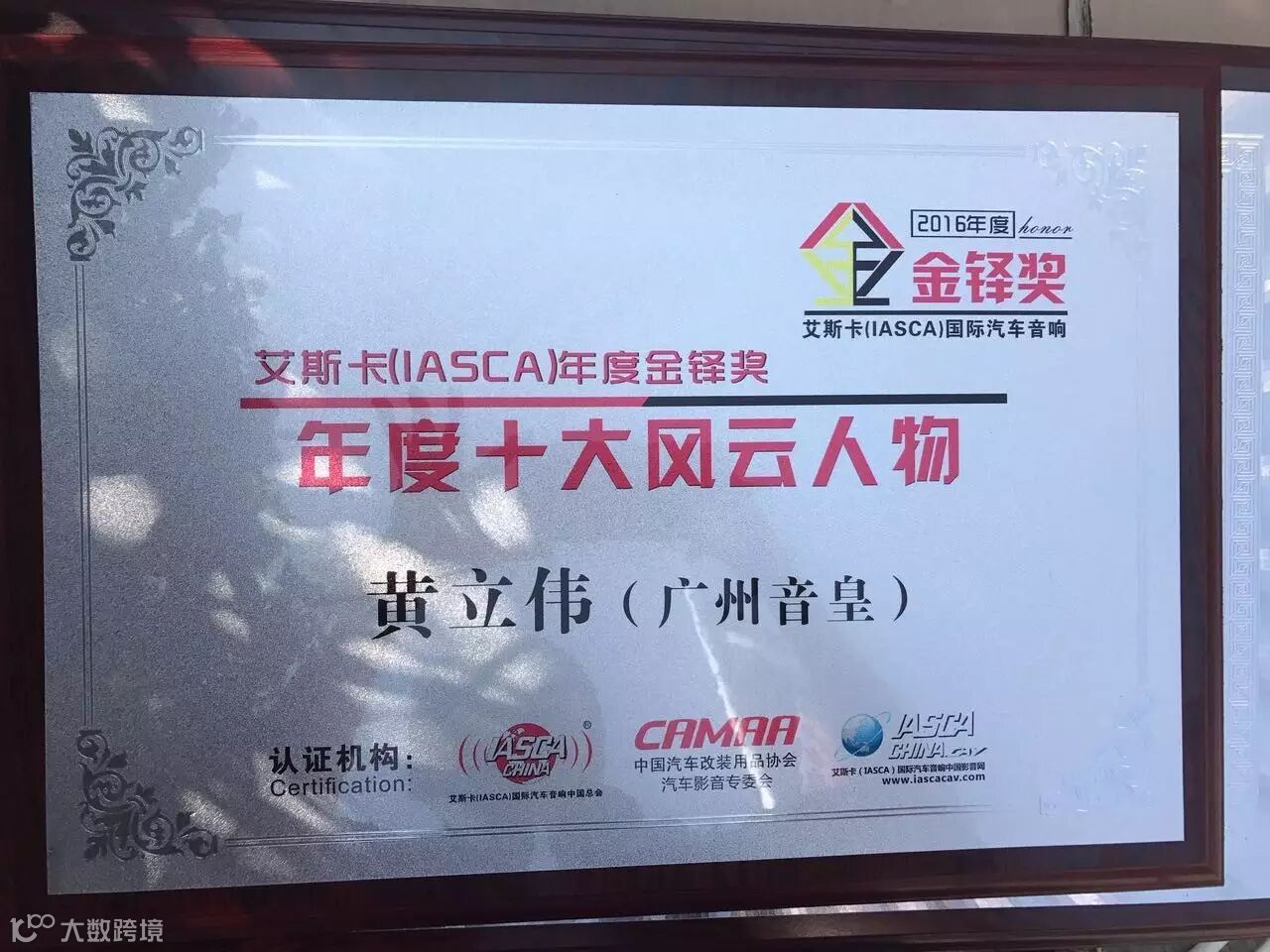 艾斯卡(IASCA)年度金铎奖——十大风云人物颁奖现场,由于时间原因奖牌由广州音皇总经理李总代领(右一)