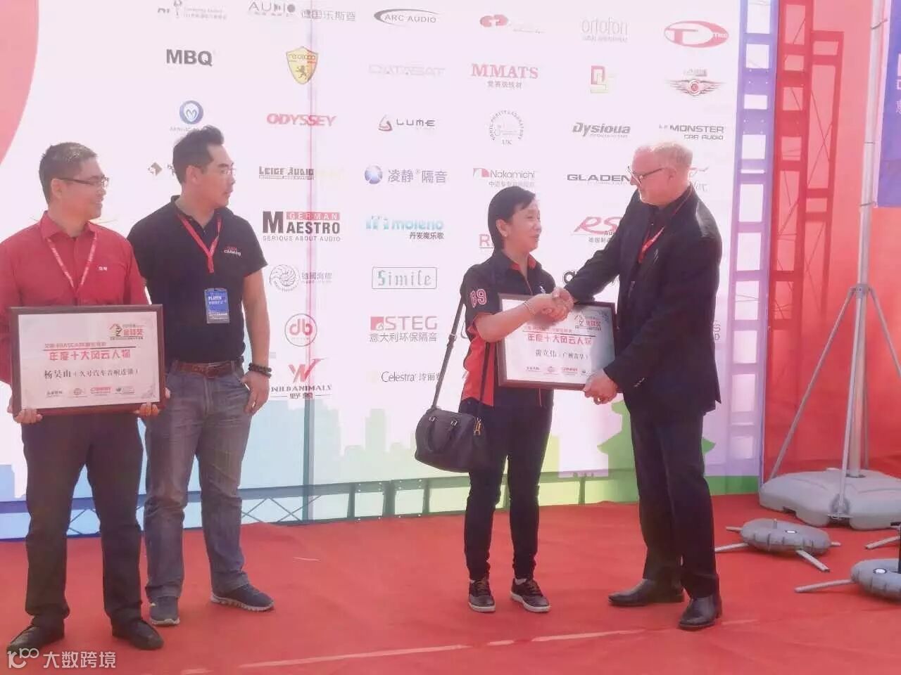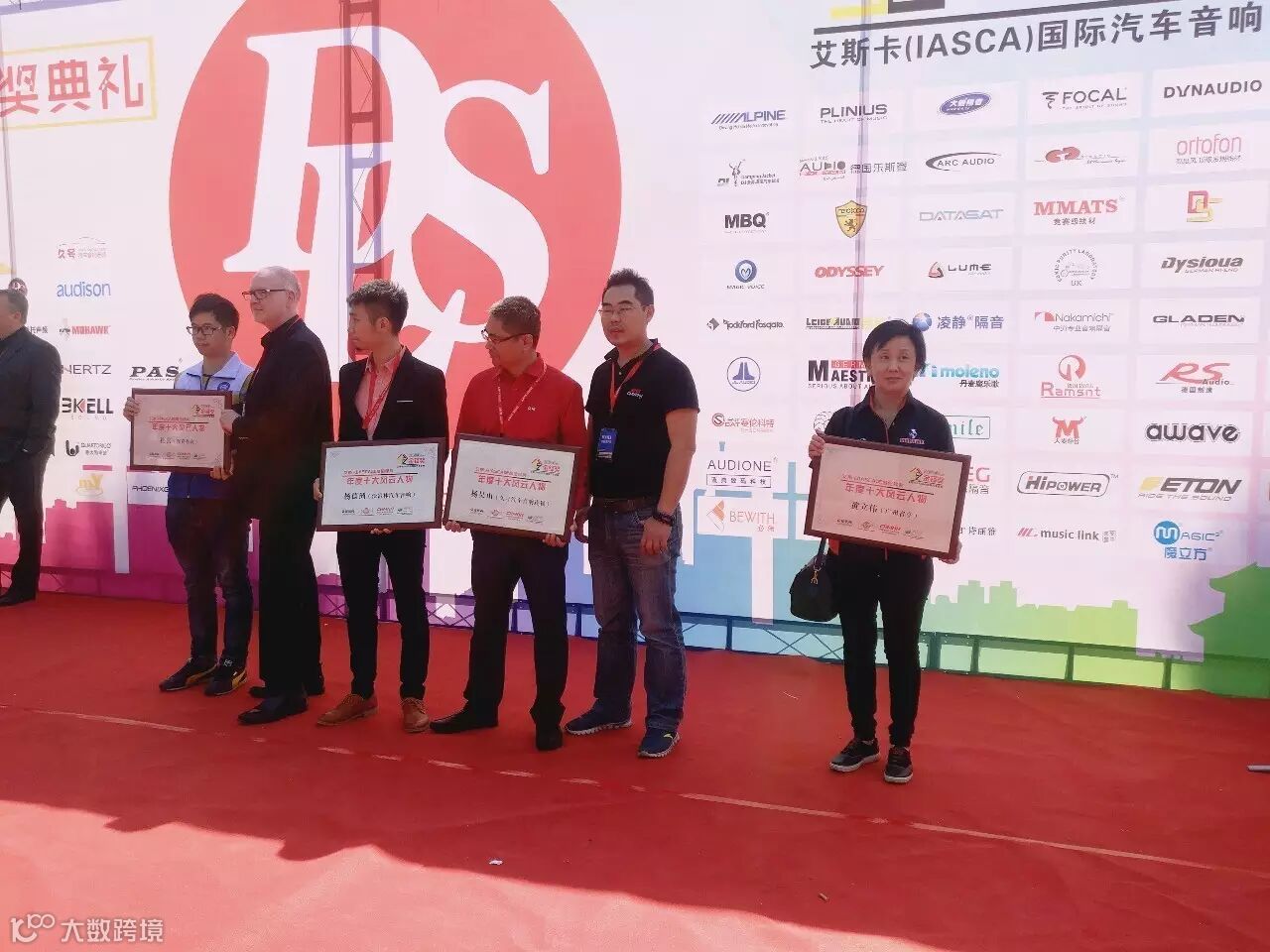 艾斯卡(IASCA)年度金铎奖——十大风云人物颁奖现场,由于时间原因奖牌由广州音皇总经理李总代领(右二)