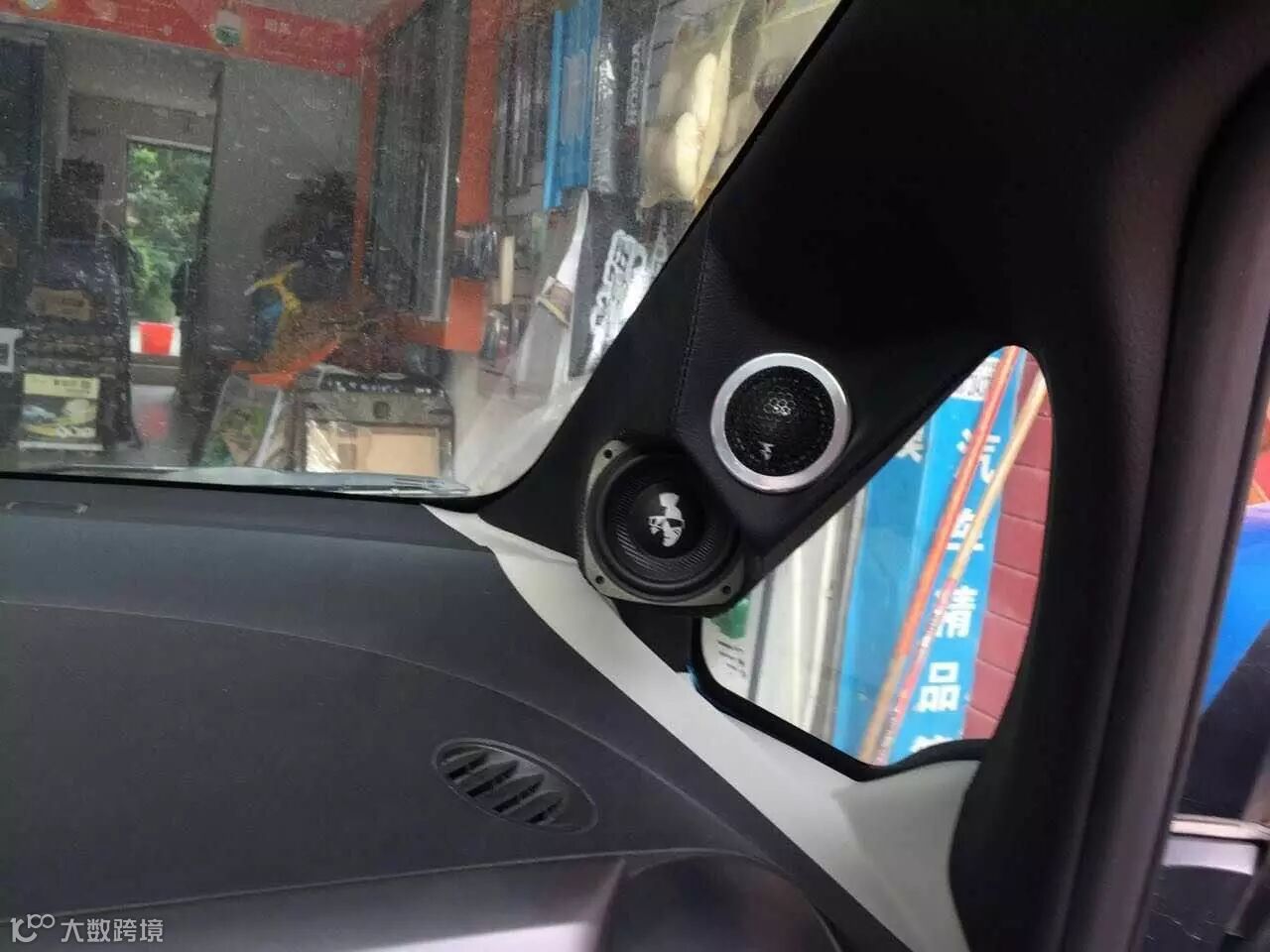 前声场安装一套豪客MP6.3三分频套装喇叭,A柱中音和高音的安装效果