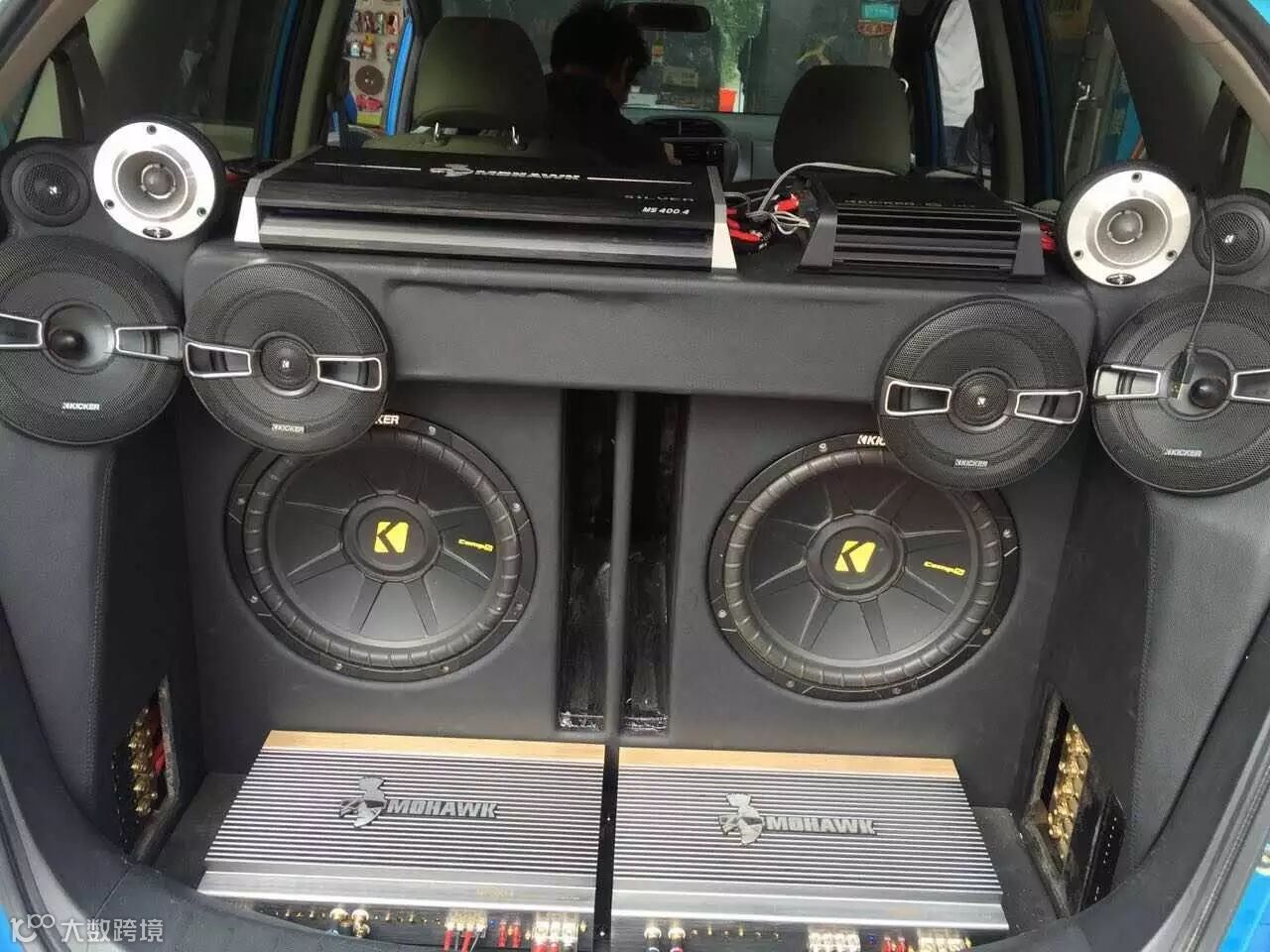 后备箱功放,低音,套装喇叭的安装效果,豪客MP系列高级功放,MS400.4四路功放,豪客MT1号角高音,KICKER KSS654炸机、人声都表现的非常出色的套装喇叭……组成发烧级音响系统!!!!