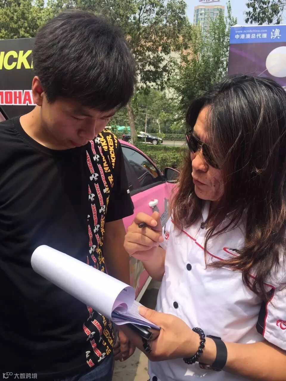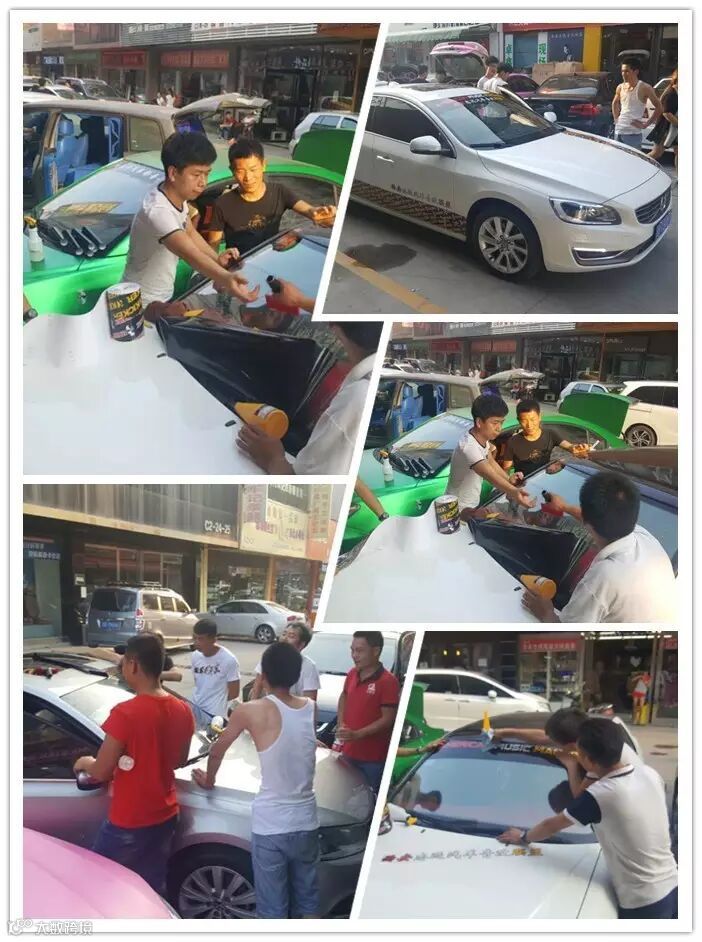 通力合作把车贴贴好