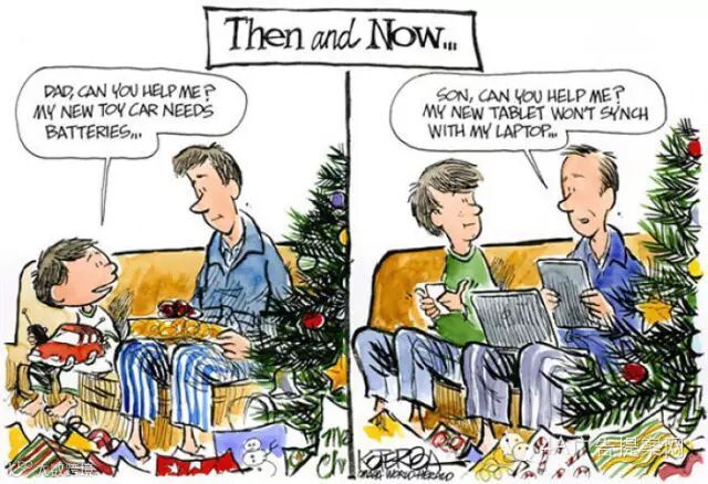 现在:儿子教父亲使用电子数码产品。