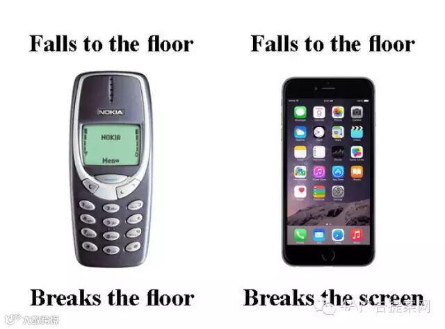 以前:Nokia掉地上,把地板打破了!