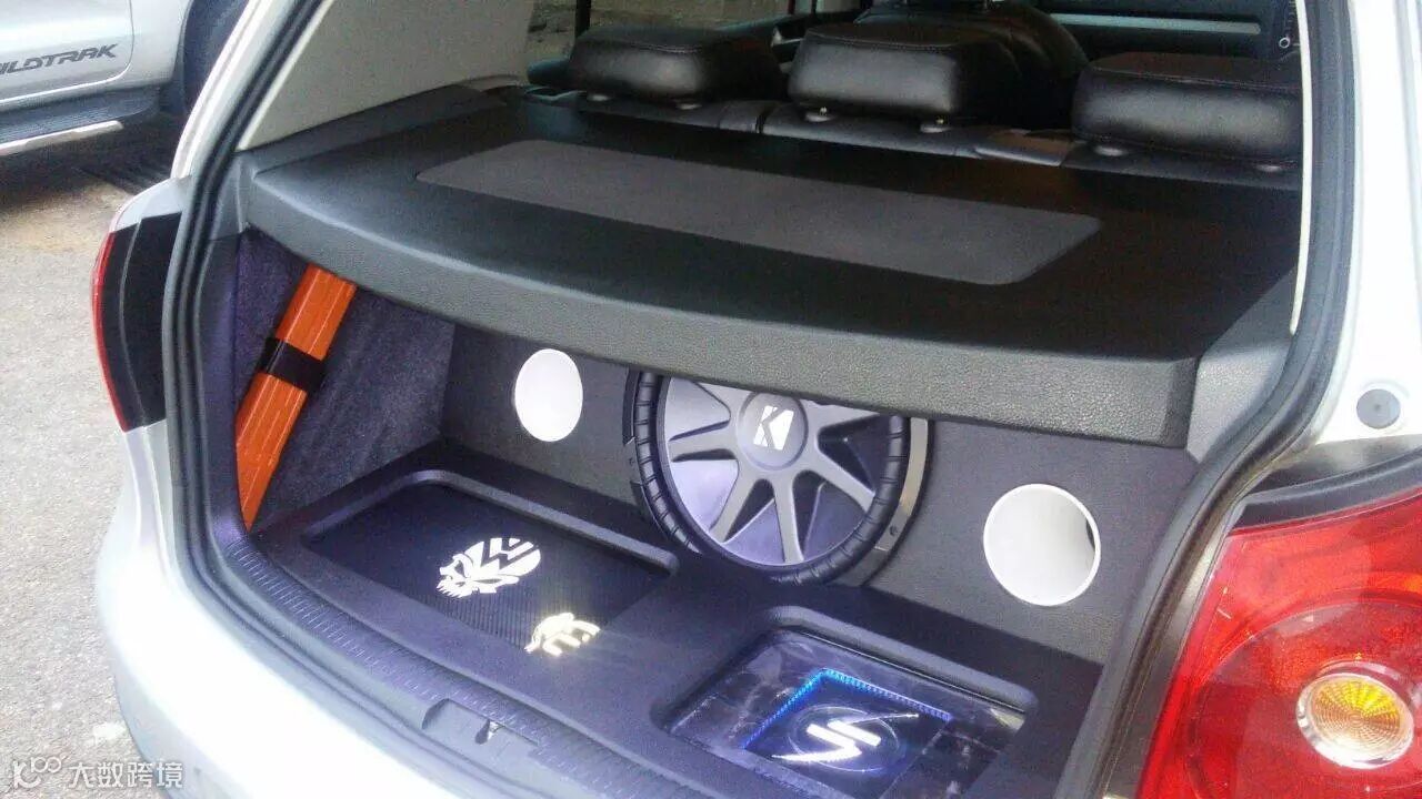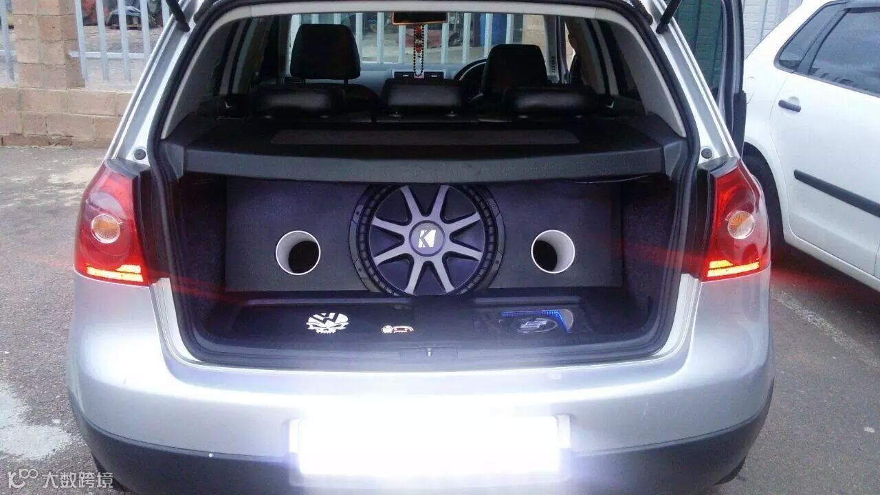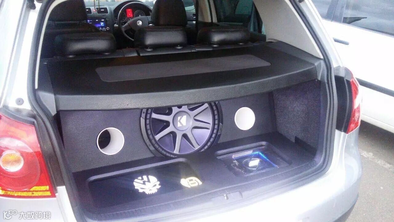 这辆高尔夫5代改装了KICKER CVR15英寸的超低音,大箱体设计,两个导风口。