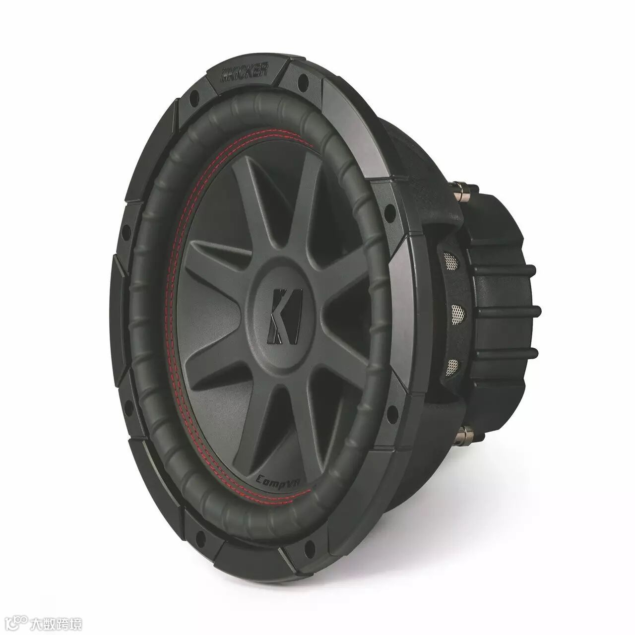 KICKER很受欢迎的低音扬声器的CompVR,精制的新型黑色外表独具特色,魅惑的双红环绕缝合和360度周边排气孔。
