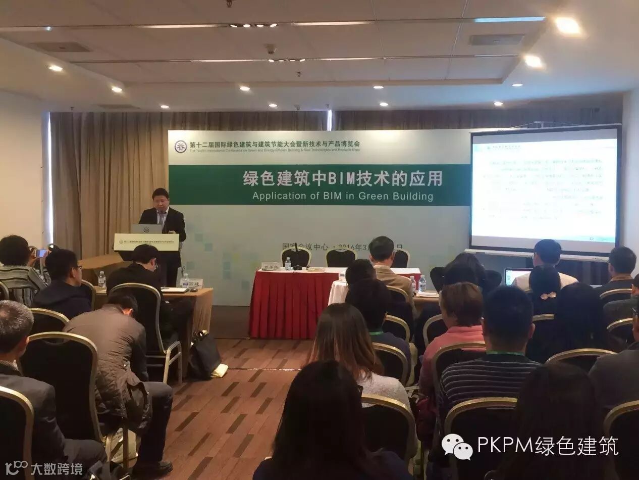 2016年3月30日第十二届国际绿色建筑与建筑节能大会分论坛“绿色建筑中BIM技术的应用”于国家会议中心正式举办。中国建筑科学研究院建研科技股份有限公司PKPM绿色建筑软件研究中心副主任张永炜为大家分享了《BIM技术推动绿色建筑发展》专项汇报,会议内容得到了大家的密切关注,整个会场人头攒动,各地专家济济一堂。
