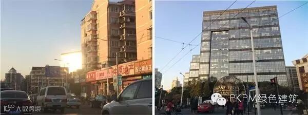 图2 同一建筑、同一时刻、不同角度和距离时,幕墙光污染照片