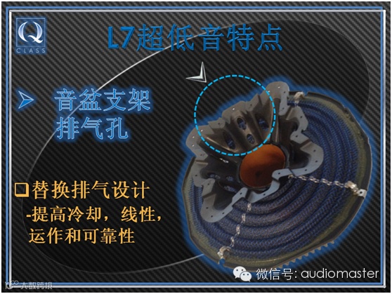 低音单元的电动机结构是没有别的低音能比的,电脑优化,最大的音圈,迄今为止最大功率处理(RMS和峰值)。由于强大的功率,超大磁铁用于精确的语音线圈控制,而翅片、铝制音圈散热器最大化散热和整体冷却线圈用于在压力下达到最佳效果。