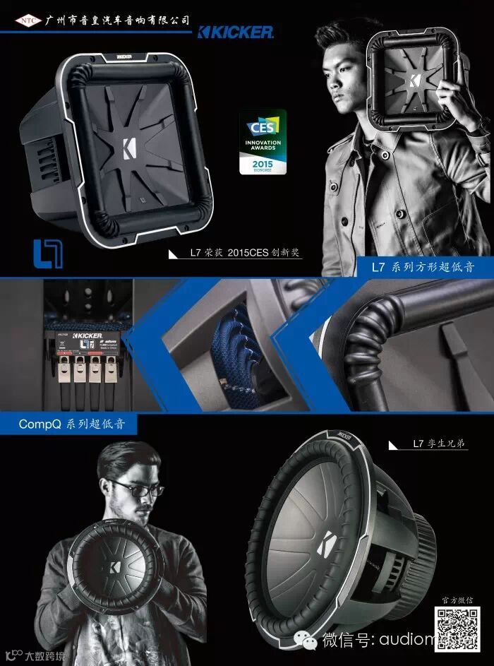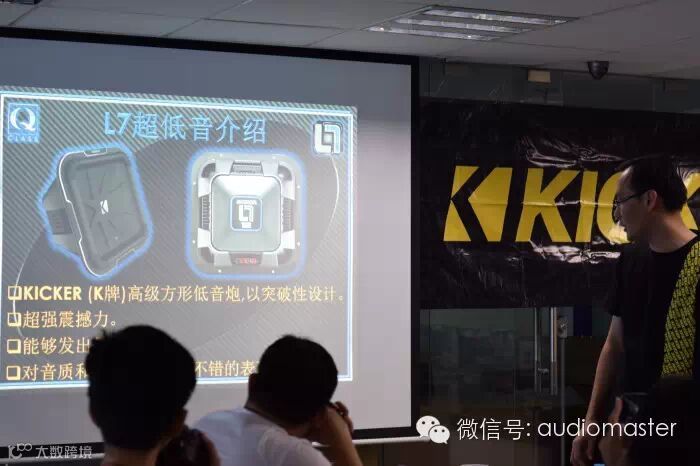 接着,马来西亚NTC集团广州音皇汽车音响技术总监曹金富给大家介绍KICKER 最新顶级系列Q Class系列产品:新款L7超低音、创新的带DSP的IQ系列功放、新款QS顶级音质套装,KICKER原装箱套装KPP210原装箱低音配功放。新款KICKER L7荣获2015 CES美国创新奖,L7超低音己经第二次获得这个奖,新的超刚性音盆,新色花边弹波和其他配件让L7成为全球最强低音。IQ系列功放5个品种有五路四路两路和单声道功放,功能强大,全部带有DSP电脑调音功能!