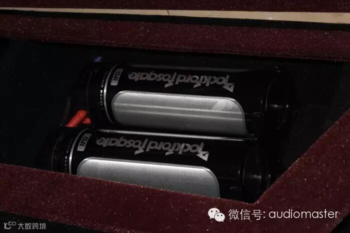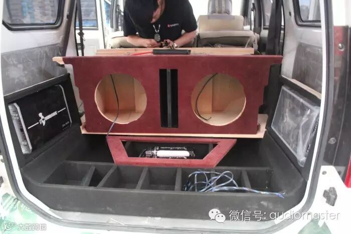 低音箱体包上红色的绒布,豪客的两台功放安装在两边