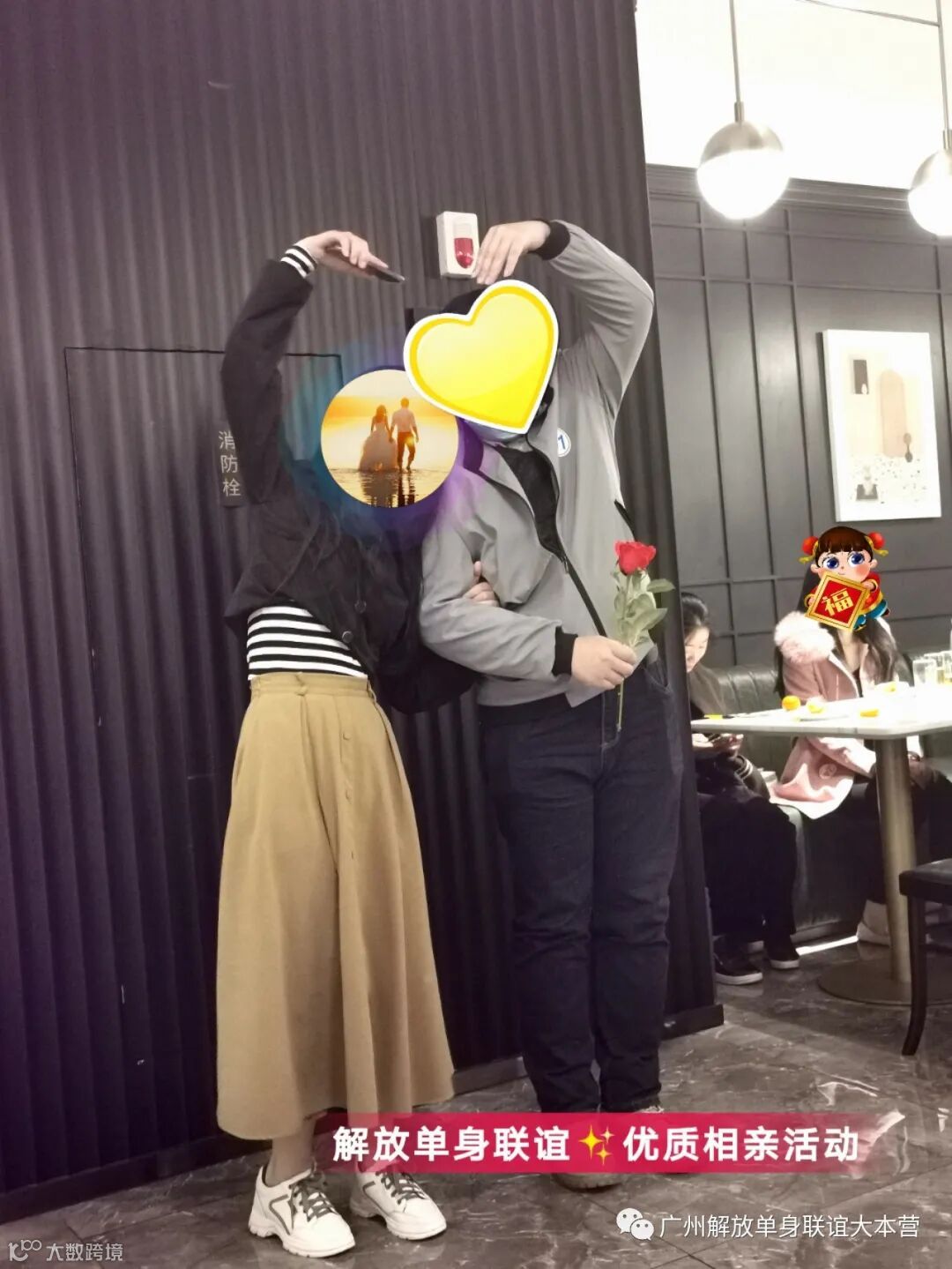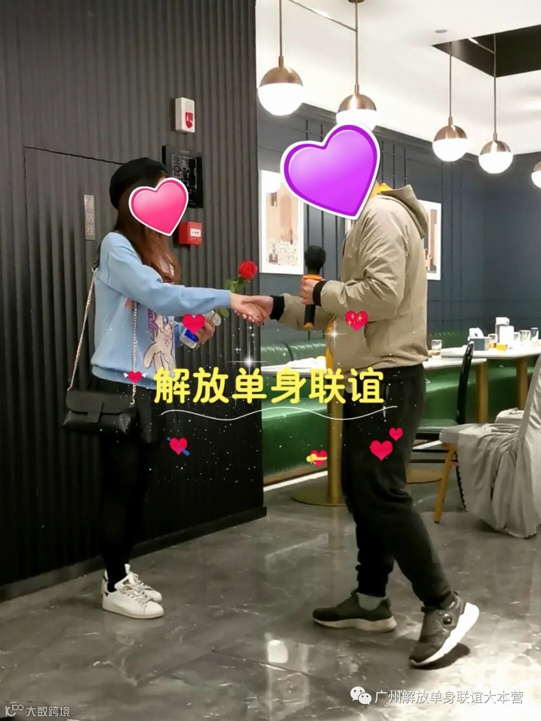1、相亲是很正能量的事,为杜绝已婚人士/不良人员混入其中产生风险,公司会选择性拍摄照片视频,参加活动即视为同意【解放单身联谊】使用, 不存在肖像权。