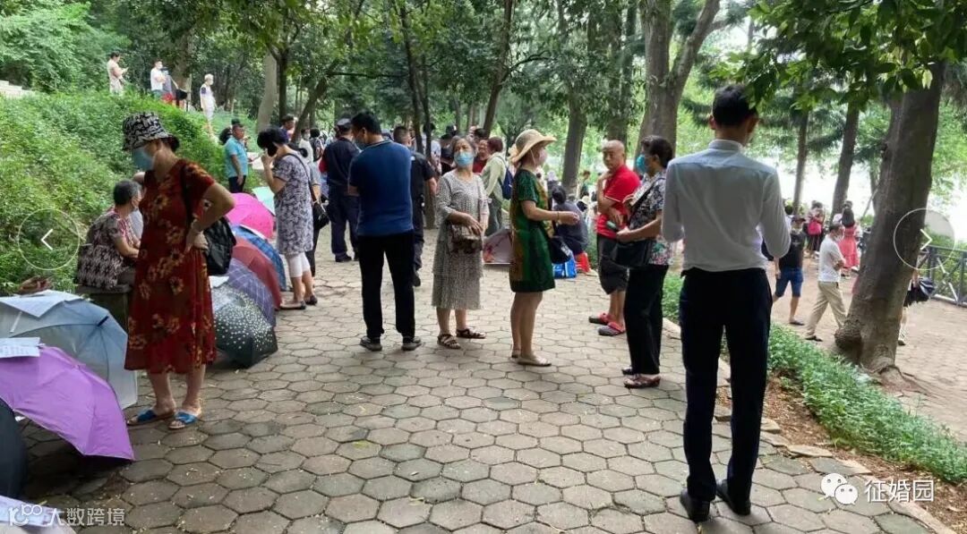 2021年7月17日中午时分,征婚园人员和众多志愿者像往常一样进驻天河公园相亲角开展志愿服务,只见人流比上周有明显的增加: