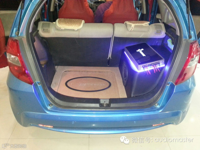 豪客MS400.4 四路功放安装在尾箱低音箱体上面