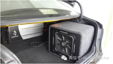 在尾箱上,K牌L7 12寸超低音做成一体成型箱体,防御尾箱右侧,霸气侧露,由于这是箱体式单独设计的,不用在原车上动工,伤及原车,再者,它是活动式的,不用还可将它搬下来。总之,整个升级方案的思路都是站在车主角度出发,真正为车主打造一套属于自己享受的移动音响空间。