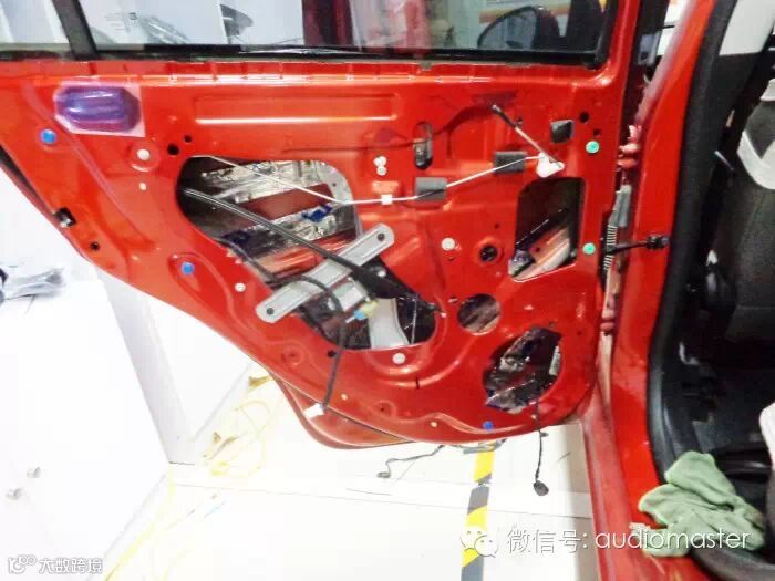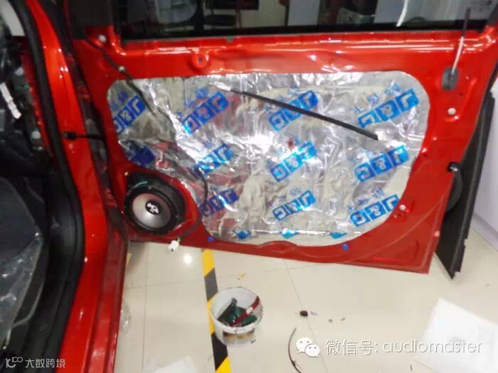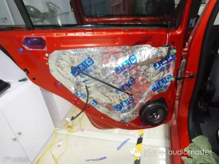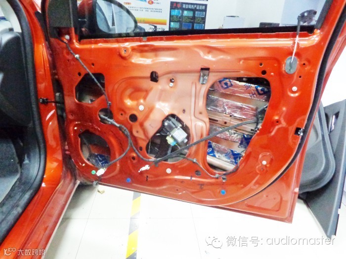 开始进行音响升级作业,安装喇叭之前,先进行车门隔音。车门隔音主要为了削减车门钣金的共振和异响,在隔音的同时起到隔热的作用。隔音还能让车门密封像一个独立箱体一样,这对提升喇叭音质效果有非常好!