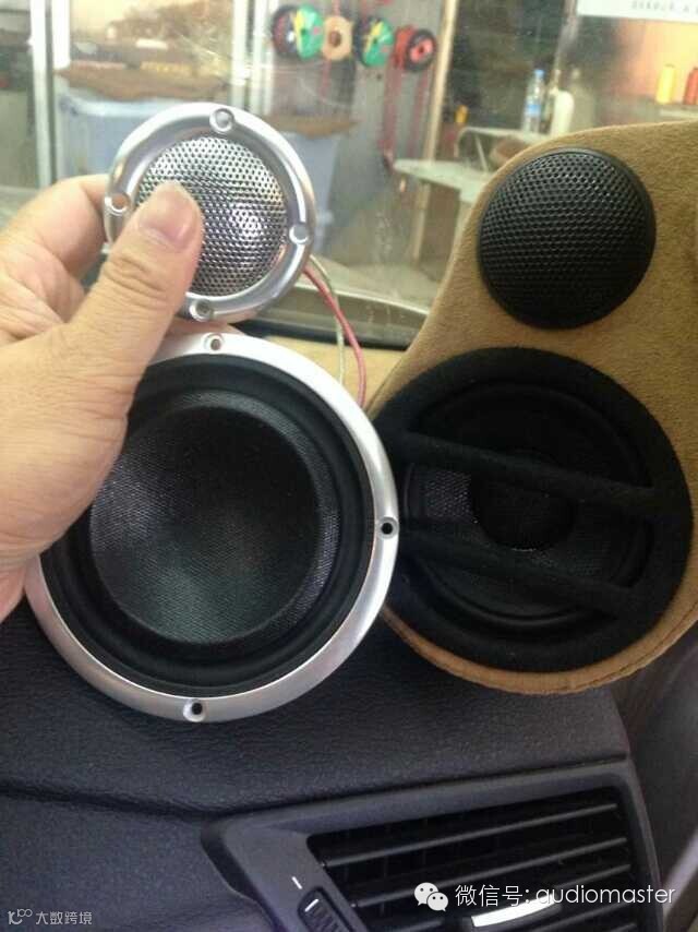 宝马原车本来改装了一套三分频,现在为了提升音响效果,选择升级意大利AD顶级系例MM1十MM4高音和中音,可以安装在原车喇叭,省了很多功夫!