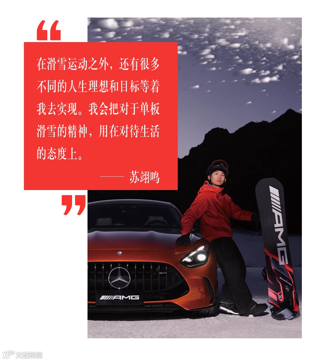 因热爱而惺惺相惜,因志同道合而并肩同行。从车主到品牌大使,苏翊鸣对极限运动单板滑雪的热爱与AMG对汽车极致性能的热爱,双向契合,彼此奔赴。