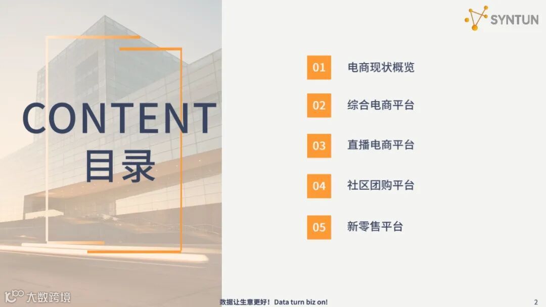 报告梳理了我国电商现状,结合综合电商平台、直播电商平台、社区团购平台和新零售平台数据分析,较为全面的展现了电商行业格局与趋势。