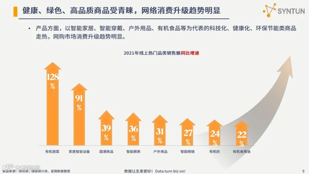 产品方面,智能、健康、绿色的产品备受青睐,网购市场消费升级趋势明显。