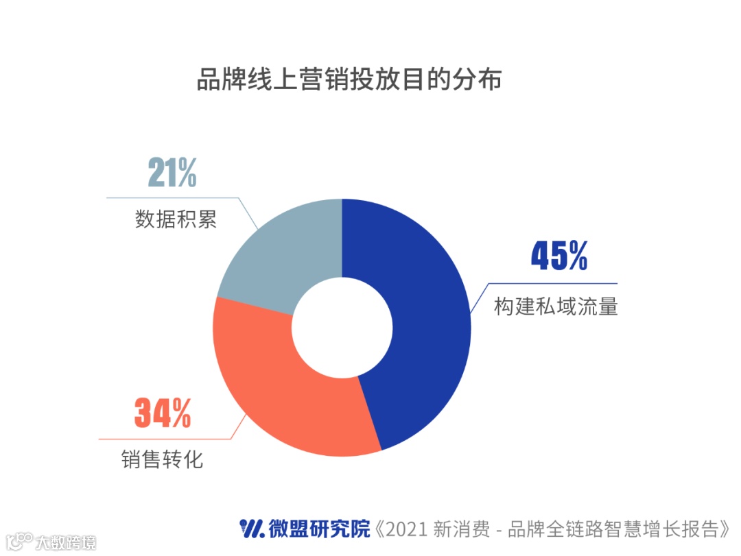 新消费品牌在市场上密集式爆发,不同品牌之间存在竞争激烈,私域流量的运营成为决定品牌能否在业内脱颖而出的关键一环。据调查,以构建私域流量为线上营销投放目的的品牌占比达到45%,这表明很多品牌主的私域意识已觉醒,如何做好私域,将公域流量转化成品牌粘性和复购的“留量池”,成为品牌“常胜将军”关键的一步棋。