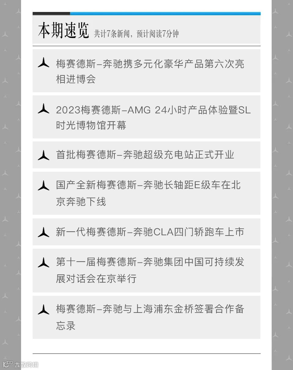 10月19日,第十一届梅赛德斯-奔驰集团中国可持续发展对话会在京举行,吸引超过200位来自汽车、商界、学界及媒体的各界人士参与。会上发布了《梅赛德斯-奔驰集团中国可持续发展蓝皮书2022-2023》,分享了可持续发展领域的最新成果和进展。当日,梅赛德斯-奔驰(中国)投资有限公司与云南铝业股份有限公司签署合作备忘录。