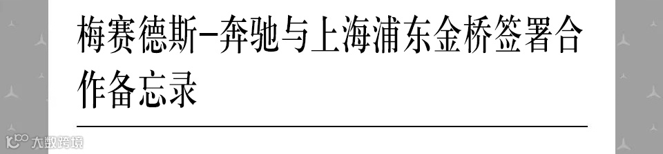 梅赛德斯-奔驰与中国(上海)自由贸易试验区管理委员会金桥管理局和上海金桥(集团)有限公司于10月17日签署合作备忘录,三方将在自动驾驶和智能网联汽车领域建立深度合作,共同推动上海智慧城市和智能网联汽车“双智联动”建设,助力区域产业转型和经济高质量发展。梅赛德斯-奔驰将充分利用上海金桥良好的营商和政策环境、高效的服务和产业生态优势,进一步加大在数字化和汽车软件等前沿领域的研发投入,以期为中国客户带来更加智能便捷的产品和服务。