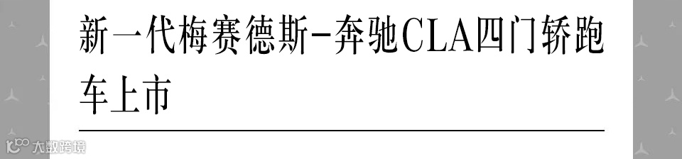 新一代梅赛德斯-奔驰CLA四门轿跑车于2023年10月20日正式上市,提供CLA 200、CLA 220、CLA 260 4MATIC三款车型,厂商建议零售价格区间为人民币309,200元至392,800元。作为梅赛德斯-奔驰轿跑车家族中最具优雅与动感的车型,CLA四门轿跑车自问世以来,便以独树一帜的唯美型格,定义了紧凑级四门轿跑车的标杆。如今,再次进化的新一代CLA四门轿跑车,凭借匠心设计的个性化、人机交互的智能化、动力系统的电气化,令新生代轿跑车的驾驭魅力淋漓尽显。