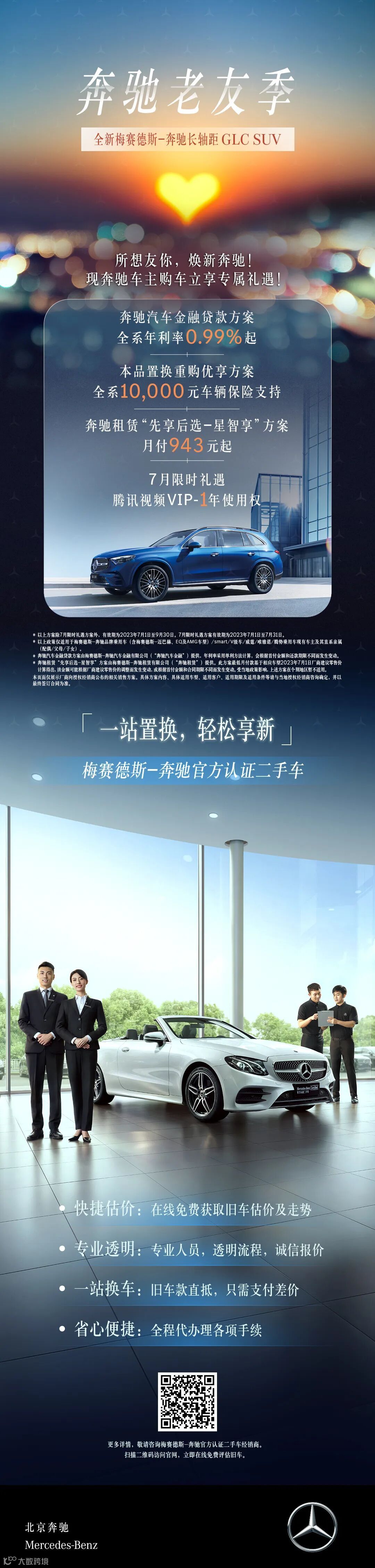 导读:全新长轴距GLC SUV现奔驰车主置换可享专属礼遇!奔驰官方认证二手车一站置换,信赖之选,助您轻松享新!